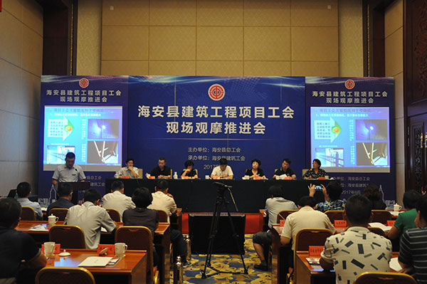 8月18日,海安縣建筑工程項(xiàng)目工會(huì)現(xiàn)場(chǎng)觀摩推進(jìn)會(huì)在石家莊太行國(guó)賓館召開??h委常委、宣傳部部長(zhǎng)嚴(yán)長(zhǎng)江、市總工會(huì)副主席楊嘩娟、市建設(shè)局副局長(zhǎng)楊娟、市建設(shè)行業(yè)工會(huì)主席朱小成、縣總工會(huì)黨組書記、副主席柴寶清、縣建管局局長(zhǎng)賈伯根、副局長(zhǎng)、工會(huì)主席徐培鴻等領(lǐng)導(dǎo)出席了會(huì)議。達(dá)欣集團(tuán)董事、副總經(jīng)理?xiàng)铎o、工會(huì)副主席吉春勤以及全縣一級(jí)資質(zhì)以上的建筑企業(yè)工會(huì)主席、海安駐石建筑企業(yè)部分代表100多人參加了會(huì)議。
