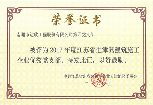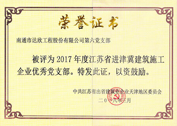 會上表彰了一批先進企業(yè)和個人,河北分公司被授予“2017年度江蘇省出省施工先進集體”,這是我公司連續(xù)六年獲此榮譽。此外第四、第六工程公司黨支部被評為“2017年度江蘇省進津冀建筑施工企業(yè)優(yōu)秀黨支部”,徐仁忠、楊靜同志被評為“2017年度江蘇省出省建筑施工先進個人”、“2017年度江蘇省進津冀建筑業(yè)企業(yè)優(yōu)秀黨員”,張維琪、陳正進同志被評為“2017年度江蘇省進津冀建筑施工企業(yè)優(yōu)秀建造師”。
