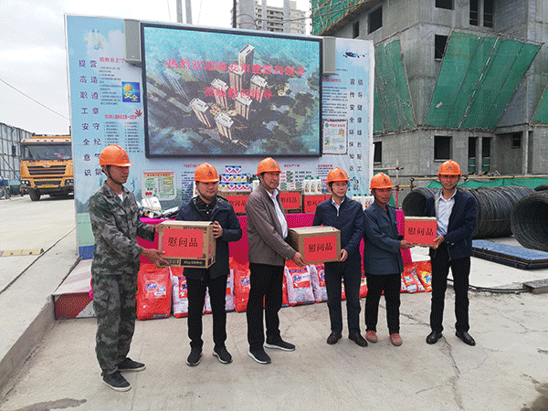 工程公司指導(dǎo)員徐修同對(duì)賈局長(zhǎng)一行的到來(lái)表示熱烈的歡迎。隨后,賈局長(zhǎng)一行參觀了項(xiàng)目施工現(xiàn)場(chǎng),徐修同就君豪項(xiàng)目做了簡(jiǎn)單介紹。賈局長(zhǎng)對(duì)施工現(xiàn)場(chǎng)各項(xiàng)工作的有序開(kāi)展表示充分肯定,同時(shí)叮囑項(xiàng)目管理人員不僅要保證工程質(zhì)量、安全和進(jìn)度,還要切實(shí)保障建筑工人的合法權(quán)益,關(guān)心建筑工人的工作與生活。最后賈局長(zhǎng)一行將慰問(wèn)品發(fā)放到工人的手中。