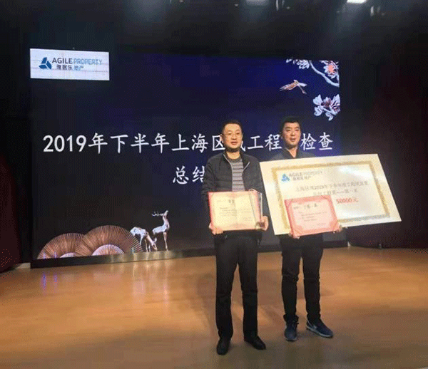 雅居樂地產(chǎn)集團為保證工程質(zhì)量,激勵區(qū)域內(nèi)各承建公司樹立優(yōu)秀總包單位標桿,實施全年上、下半年度區(qū)域內(nèi)檢查評比,第一工程公司承接的中央府項目在雅居樂地產(chǎn)集團上海區(qū)域上半年檢查評比中獲得了“雅居樂上海區(qū)域總承包工程第一名”的殊榮。集團公司董事、第一工程公司經(jīng)理杭小建受邀在雅居樂地產(chǎn)集團上海區(qū)域上半年度總結(jié)大會上領獎并作經(jīng)驗交流。