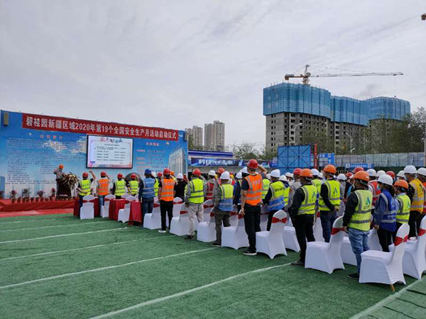 為貫徹落實國務(wù)院安委辦關(guān)于開展全國“安全生產(chǎn)月”和“安全生產(chǎn)萬里行”活動要求,6月6日,碧桂園新疆區(qū)域在第十一工程公司碧桂園黃金時代二期項目部舉行2020年“安全生產(chǎn)月”活動啟動儀式。碧桂園新疆區(qū)域總裁宋朕、碧桂園新疆區(qū)域大運(yùn)營組長張揚(yáng)、碧桂園黃金時代項目總經(jīng)理寧波以及碧桂園新疆區(qū)域9個項目11個標(biāo)段碧桂園項目經(jīng)理、監(jiān)理單位總監(jiān)、總包單位負(fù)責(zé)人近百人參加此次啟動儀式。