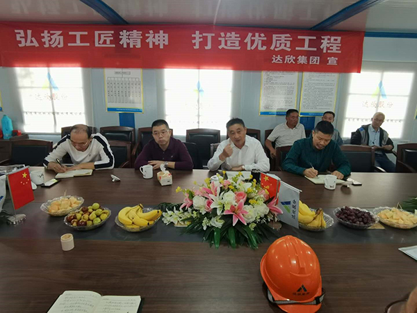 董事長一行首先對項目現(xiàn)場進行了巡查,對拉片式鋁模以及整體全鋼爬架進行了重點檢查,聽取了項目經(jīng)理對項目情況的匯報,對檢查中發(fā)現(xiàn)的問題提出了整改意見。隨后,在項目部會議室與第八工程公司管理人員進行了座談。