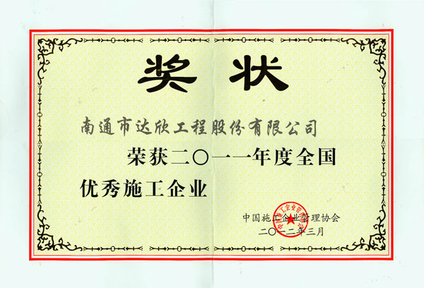 公司榮獲2011年度全國(guó)優(yōu)秀施工企業(yè)