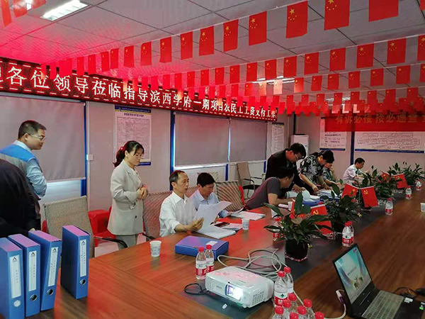 安全員毛張旭就項目在農(nóng)民工工資支付工作的開展情況,從現(xiàn)場管理到資料留存進行了全面的介紹。隨后,調(diào)研組分別對民工的工資支付情況、人數(shù)、整體工作年齡、職工待遇、整體文化程度等方面進行了詳細的了解。最后,由項目經(jīng)理吳慧強和勞資員梁有為陪同檢查組查閱了文件資料。