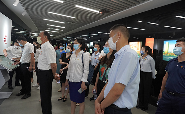 領(lǐng)導(dǎo)們一行來到企業(yè)展示中心,觀看了集團(tuán)黨建專題片---紅旗鐵軍,詳細(xì)聆聽了集團(tuán)黨委開展的四項融合、四微黨建、三項目標(biāo)的“四四三”黨建工作法等內(nèi)容,了解了具有達(dá)欣特色的“工地黨旗美如畫”黨建工作新舉措、新理念。隨后,領(lǐng)導(dǎo)們還參觀了馬和軍勞模創(chuàng)新工作室黨支部,聽取了集團(tuán)建筑工地上流動黨員立足本職崗位,發(fā)揮帶頭模范作用,提升項目質(zhì)量,助推集團(tuán)高質(zhì)量發(fā)展的情況介紹。