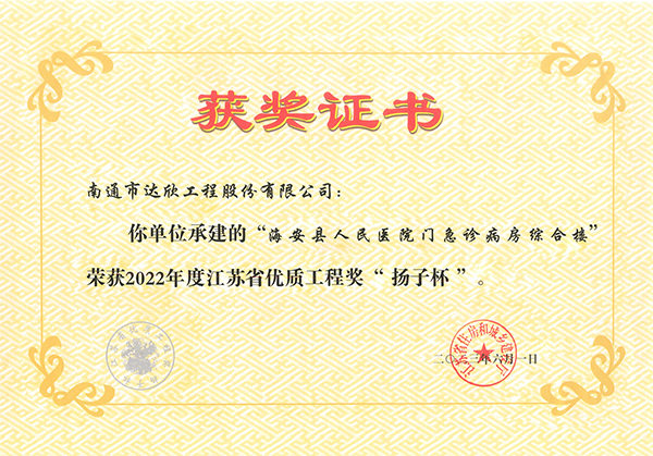 近日,江蘇省住房和城鄉(xiāng)建設(shè)廳公布了2022年度江蘇省優(yōu)質(zhì)工程獎(jiǎng)“揚(yáng)子杯”獲獎(jiǎng)名單,第一工程公司承建的海安市人民醫(yī)院門(mén)急診病房綜合樓項(xiàng)目榜上有名。