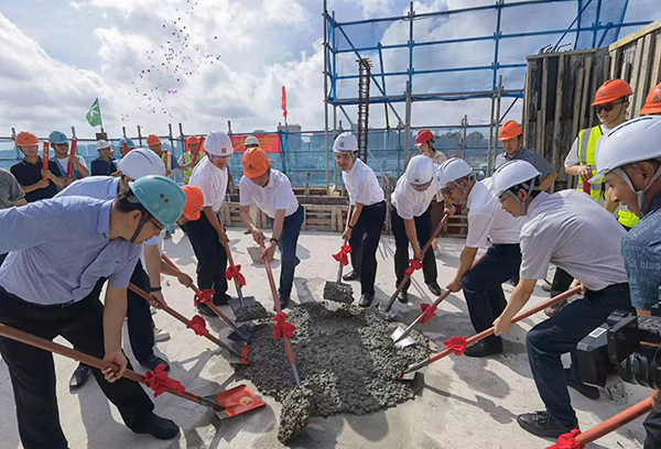 8月1日,由集團(tuán)第九工程公司承建的雅仕書(shū)苑項(xiàng)目6#樓主體封頂儀式成功舉行。瑞海集團(tuán)黨委書(shū)記、董事長(zhǎng)郭玉祥,黨委副書(shū)記、總經(jīng)理周玉宇,精誠(chéng)監(jiān)理公司副總經(jīng)理徐俊海,達(dá)欣集團(tuán)副總經(jīng)理、安全總監(jiān)溫鶴華,第九工程公司總經(jīng)理陸良兵等出席活動(dòng)。