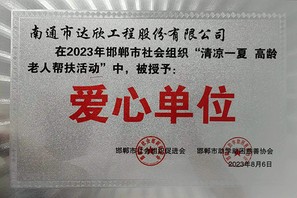 近日,集團第三工程公司積極參與由邯鄲市民政局倡導(dǎo),邯鄲市社會組織促進會、邯鄲市助學(xué)助困慈善協(xié)會共同承辦的“清涼一夏 高齡老人幫扶慰問”活動,并被授予“愛心單位”榮譽稱號。