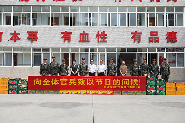 為慶祝中國人民解放軍建軍96周年,大力弘揚愛軍擁軍的光榮傳統(tǒng),推動軍民融合發(fā)展,7月31日,達(dá)欣集團(tuán)黨委、工會聯(lián)合海安市人武部組織魯班傳人志愿服務(wù)隊成員來到武警南通支隊執(zhí)勤二大隊海安中隊開展“愛國擁軍‘欣’向黨,共敘軍民魚水情”擁軍慰問活動,集團(tuán)在海領(lǐng)導(dǎo)劉厚純、楊靜參加活動。