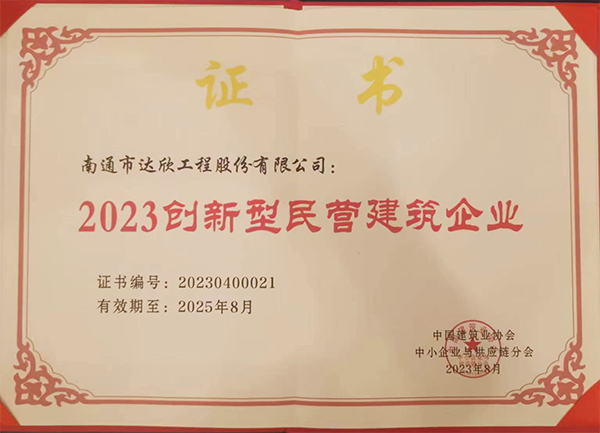 達(dá)欣集團(tuán)榮獲“2023創(chuàng)新型民營建筑企業(yè)”