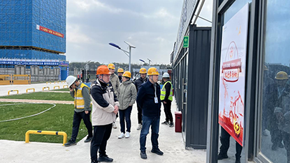繆永建書記一行仔細聽取了本工程進度情況,深入了解施工現(xiàn)場,檢查現(xiàn)場管理,詢問施工中遇到的困難,并給予解決意見和建議。同時,他對施工現(xiàn)場管理表示肯定,他指出達欣作為南通建筑行業(yè)的明星單位,要爭取在今年上半年南通市區(qū)安全生產(chǎn)觀摩工地展現(xiàn)出項目的亮點和品質(zhì)。