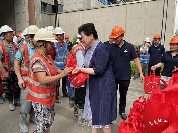 葛玉琴深入施工現(xiàn)場(chǎng),看望慰問(wèn)了高溫下堅(jiān)守崗位的一線職工,為他們送上慰問(wèn)用品,并叮囑大家注意安全,做好防暑降溫工作。她說(shuō),防暑降溫是夏季重要?jiǎng)趧?dòng)保護(hù)工作,直接關(guān)系廣大勞動(dòng)者的身體健康和企業(yè)的安全生產(chǎn)。她希望,大家共同努力,讓安全意識(shí)更加深入人心,切實(shí)筑牢安全屏障,項(xiàng)目部要合理安排作業(yè)時(shí)間,做好防暑應(yīng)急措施,切實(shí)維護(hù)建設(shè)者勞動(dòng)安全健康權(quán)益。