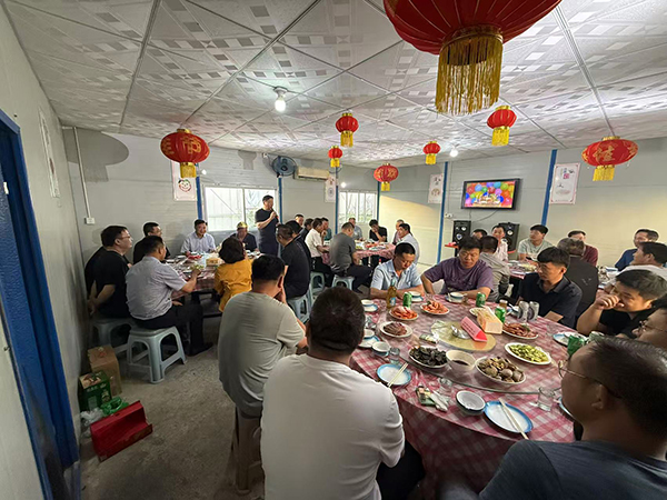 6月5日,是第六工程公司悅雋公館項目經(jīng)理束長春和御京府項目副經(jīng)理曹為華的60歲生日,兩位老同志分別在達欣工作了41年和26年。集團清收清欠工作組顧問徐仁忠、工程公司經(jīng)理謝廣財、各科室負責人分別赴項目部參加了他們的生日晚宴。