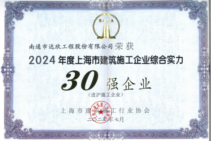 近日,上海市建筑施工行業(yè)協(xié)會公布了2024年度上海市建筑施工企業(yè)綜合實力結(jié)果,第一工程公司連續(xù)十八年獲評“上海市建筑施工企業(yè)綜合實力30強企業(yè)”和“上海市建筑業(yè)誠信企業(yè)”稱號。