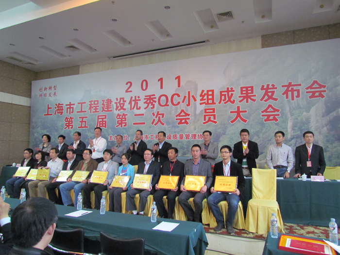 4月17日上海市工程建設(shè)質(zhì)量管理協(xié)會召開2011年建設(shè)工程優(yōu)秀QC小組活動成果發(fā)布會暨第五屆第二次會員大會。第一工程公司選送的 “攻克3m厚大體積砼底板裂縫”、“提高施工現(xiàn)場安全達標優(yōu)良率”、“推行‘四節(jié)一環(huán)?!行Ы档凸こ坛杀尽薄ⅰ疤岣呓ㄖ粔こ痰氖┕べ|(zhì)量”、“有效控制填充墻內(nèi)混凝土構(gòu)造柱裂縫”、“有效控制斜屋面混凝土施工質(zhì)量”、“提高YTONG砂加氣砼砌塊砌筑合格率”、“有效提高模板工程施工質(zhì)量”、“降低明珠城三期工程鋼筋損耗”等九項QC成果均參加本次活動的發(fā)布與交流。這次江蘇省在滬企業(yè)參加QC成果發(fā)布、交流共83篇,我公司就占據(jù)其中的14%,得到了駐滬辦領(lǐng)導(dǎo)的充分肯定。工程公司也被上海市工程建設(shè)質(zhì)量管理協(xié)會評為2011年上海市建設(shè)質(zhì)量管理小組活動優(yōu)秀企業(yè)。
