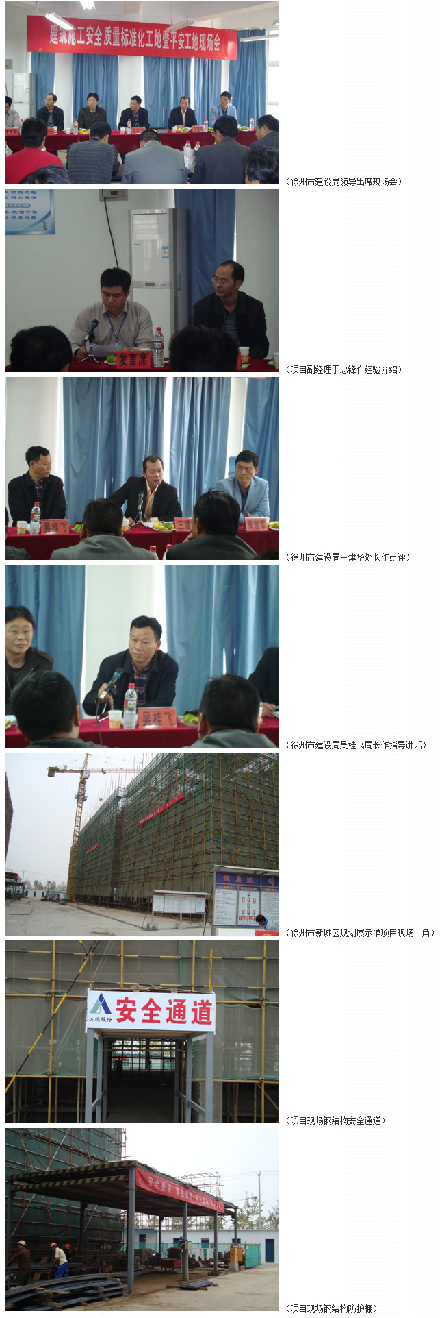 2008年10月10日,在這秋高氣爽、陽(yáng)光燦爛的日子里。我公司施工的徐州市新城區(qū)規(guī)劃展示館工程作為全市“創(chuàng)質(zhì)量安全標(biāo)準(zhǔn)化、平安工地”的觀摩工地,迎來(lái)了全市各施工單位、監(jiān)理單位以及徐州市建設(shè)局等單位的領(lǐng)導(dǎo)及專家。