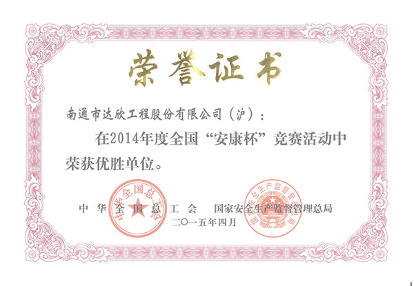 近日,第一工程公司被全國(guó)總工會(huì)和國(guó)家安全生產(chǎn)監(jiān)督管理總局聯(lián)合授予2014年度“全國(guó)‘安康杯’競(jìng)賽優(yōu)勝單位”稱號(hào),這也是公司首次獲此殊榮。