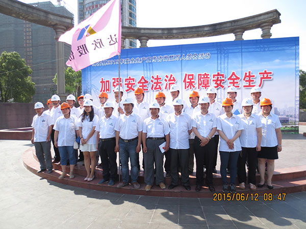 12日,我公司分管安全副總經理、工會負責人、管理者代表、安全設備部主管以及第九工程公司管理人員組成的方陣,在海安中洋廣場參加了縣2015年安全生產宣傳咨詢暨萬人簽名活動。