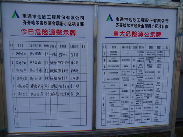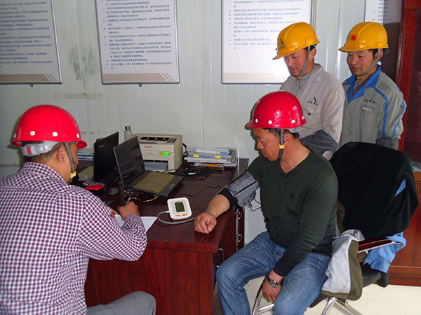 加強(qiáng)宣傳,項(xiàng)目部堅(jiān)持每日對(duì)職工進(jìn)行班組教育和日常班前教育,讓職工每日班前都能明確當(dāng)日的工作任務(wù)、操作規(guī)程和工作環(huán)境,提高個(gè)人的安全防范意識(shí),確保安全生產(chǎn);在每棟樓懸掛“安全生產(chǎn)月”活動(dòng)的宣傳標(biāo)語。加強(qiáng)警示,在工地大門口設(shè)置了重大危險(xiǎn)源公示牌,在每棟樓的入口處公示當(dāng)日本樓棟號(hào)的危險(xiǎn)源,時(shí)刻提醒職工注意作業(yè)期間身邊的危險(xiǎn)源。加強(qiáng)檢查,認(rèn)真組織對(duì)臨邊、洞口防護(hù)、漏電保護(hù)裝置進(jìn)行重點(diǎn)檢查,及時(shí)消除安全隱患。同時(shí)對(duì)各項(xiàng)目部40歲以上的員工進(jìn)行一次拉網(wǎng)式血壓檢查。對(duì)于高血壓的特殊工種,要求其休息調(diào)養(yǎng),待血壓正常后方可繼續(xù)上崗。