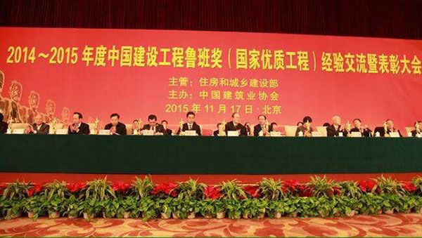 11月17日,2014-2015年度中國(guó)建設(shè)工程魯班獎(jiǎng)(國(guó)家優(yōu)質(zhì)工程)經(jīng)驗(yàn)交流暨表彰大會(huì)在北京釣魚臺(tái)國(guó)賓館舉行。由我公司承建的齊市公安局業(yè)務(wù)技術(shù)用房,參建的海安中洋公寓榮獲魯班金像獎(jiǎng)。