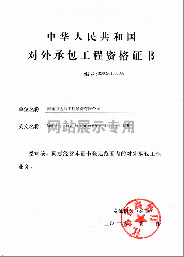 1月28日,公司獲得江蘇省商務(wù)廳頒發(fā)的“對(duì)外承包工程資格證書”,由此為走出國(guó)門承接工程、派遣勞務(wù)獲得了市場(chǎng)準(zhǔn)入許可,同時(shí)也為公司積極拓展更大的發(fā)展空間奠定了基礎(chǔ)。這是公司積極策應(yīng)“一帶一路”國(guó)家戰(zhàn)略的市場(chǎng)選擇,也是公司面對(duì)新常態(tài)形勢(shì)下,我國(guó)固定資產(chǎn)投資下滑,國(guó)內(nèi)需求增長(zhǎng)放緩,建筑業(yè)僧多粥少的產(chǎn)能過(guò)剩問(wèn)題越顯突出的發(fā)展抉擇。
